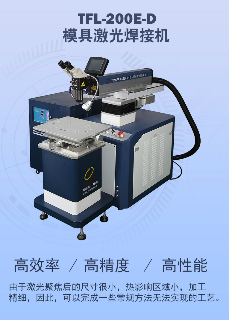 出口型模具激光焊機(jī)是通發(fā)激光公司專門為出口國外客戶使用而設(shè)計(jì)的系列機(jī)型TFL-200E,適用于各類精密注塑模具、壓鑄模具等模具激光修補(bǔ)焊接;同時(shí)也適合鑄件沙孔激光修補(bǔ)、模具崩缺激光修復(fù)、過切加工等的激光修補(bǔ);各類金屬結(jié)構(gòu)件、金銀首飾的激光焊接加工。
